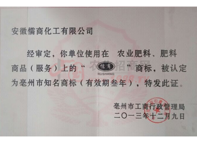 安徽儒商化肥以其產(chǎn)品新、效益好、貢獻大的特點目前暢銷河南、山東、江蘇、安徽、廣東、東北等地,"儒商"商標和"金儒商"商標成為周邊地區(qū)暢銷品牌,成為消費者信賴的肥銷售品牌之一。