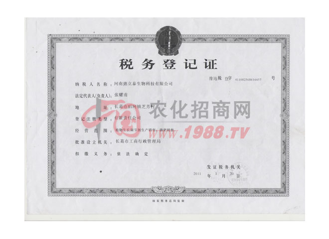 • 稅務(wù)登記證稅務(wù)登記證