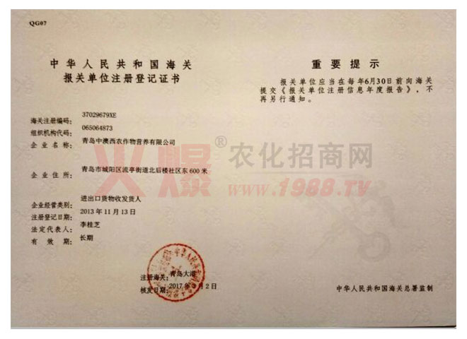 青島中澳西農(nóng)作物營(yíng)養(yǎng)有限公司經(jīng)過(guò)多年的發(fā)展,于2015年正式成為多元化地進(jìn)口產(chǎn)品營(yíng)運(yùn)商。不僅分銷(xiāo)國(guó)外先進(jìn)的植物營(yíng)養(yǎng)產(chǎn)品,還分銷(xiāo)國(guó)外優(yōu)秀的農(nóng)副產(chǎn)品(如葡萄酒、咖啡...